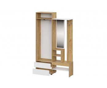Прихожая «Абрау» — современное и стильное решение для функционального оформления прихожей. Модель оснащена вместительным шкафом для одежды, зеркалом и удобными открытыми полками для хранения мелочей и обуви. Лаконичный дизайн и гармоничное сочетание оттенков делают эту прихожую выразительным элементом современного интерьера.