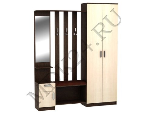 Прихожая «Мия-1» — функциональная модель с продуманной компоновкой для удобного хранения одежды и обуви. В конструкции предусмотрены просторный двухдверный шкаф, зеркало, открытая зона с крючками для верхней одежды, тумба для мелочей и ниша для обуви. Лаконичный дизайн и универсальные оттенки делают эту прихожую отличным решением для современных интерьеров.