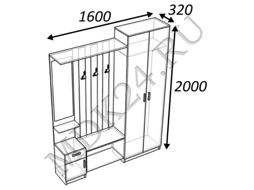 Размеры: 1600×2020×320 мм (Ш×В×Г)