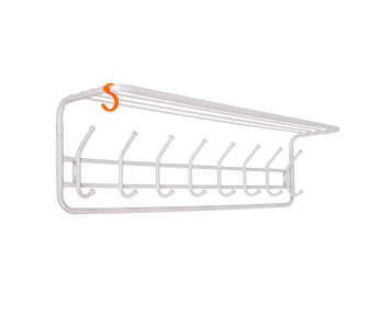 Вешалка с полкой «1000» — функциональный элемент для организации пространства в прихожей. Восемь удобных крючков позволяют разместить верхнюю одежду и аксессуары, а компактная полка подходит для хранения головных уборов и других мелочей. Прочная металлическая конструкция и лаконичный дизайн делают эту модель практичным и долговечным решением для любого интерьера.