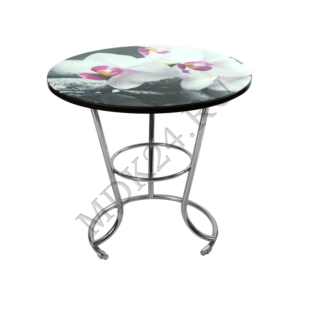 Обеденный стол «Омега» — стильная и современная модель с эффектной стеклянной столешницей, украшенной цветочным принтом. Изогнутые хромированные ножки придают конструкции легкость и элегантность, а также обеспечивают устойчивость. Идеально подходит для компактных кухонь или зон отдыха.
