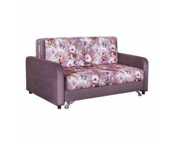 Для наполнения дивана используется пенополиуретан. Обивка из ткани с мягкой структурой, Она украшена множеством красивых светлых, темных и розовых цветов. Сиреневый фон придает мебели особый шик и неповторимую роскошь. Подлокотники отделаны искусственной кожей. Они удобные, широкие и крепкие.